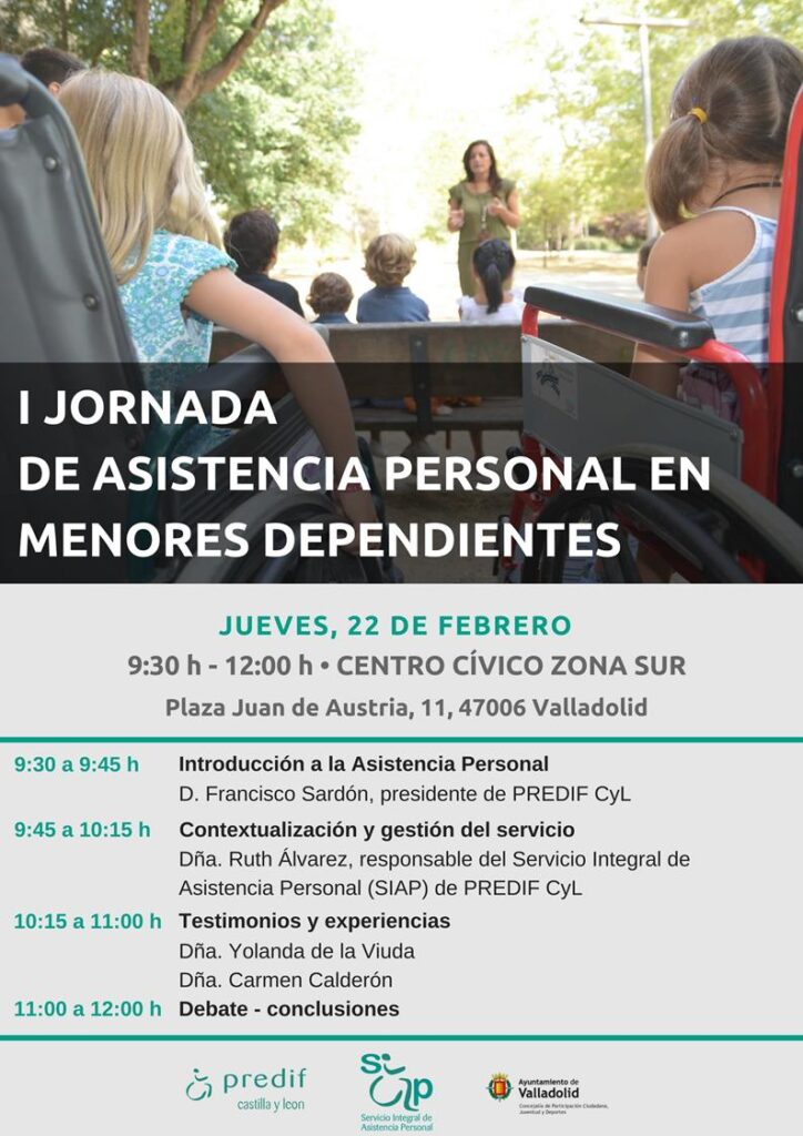 PREDIF Castilla y León ha organizado la ‘I Jornada de Asistencia Personal en menores dependientes’, que tendrá lugar en jueves, 22 de de febrero, a las 9:30 horas en el Centro Cívico Zona Sur de Valladolid, donde hablaremos de la importancia de esta figura para el desarrollo de los menores con algún tipo de dependencia.