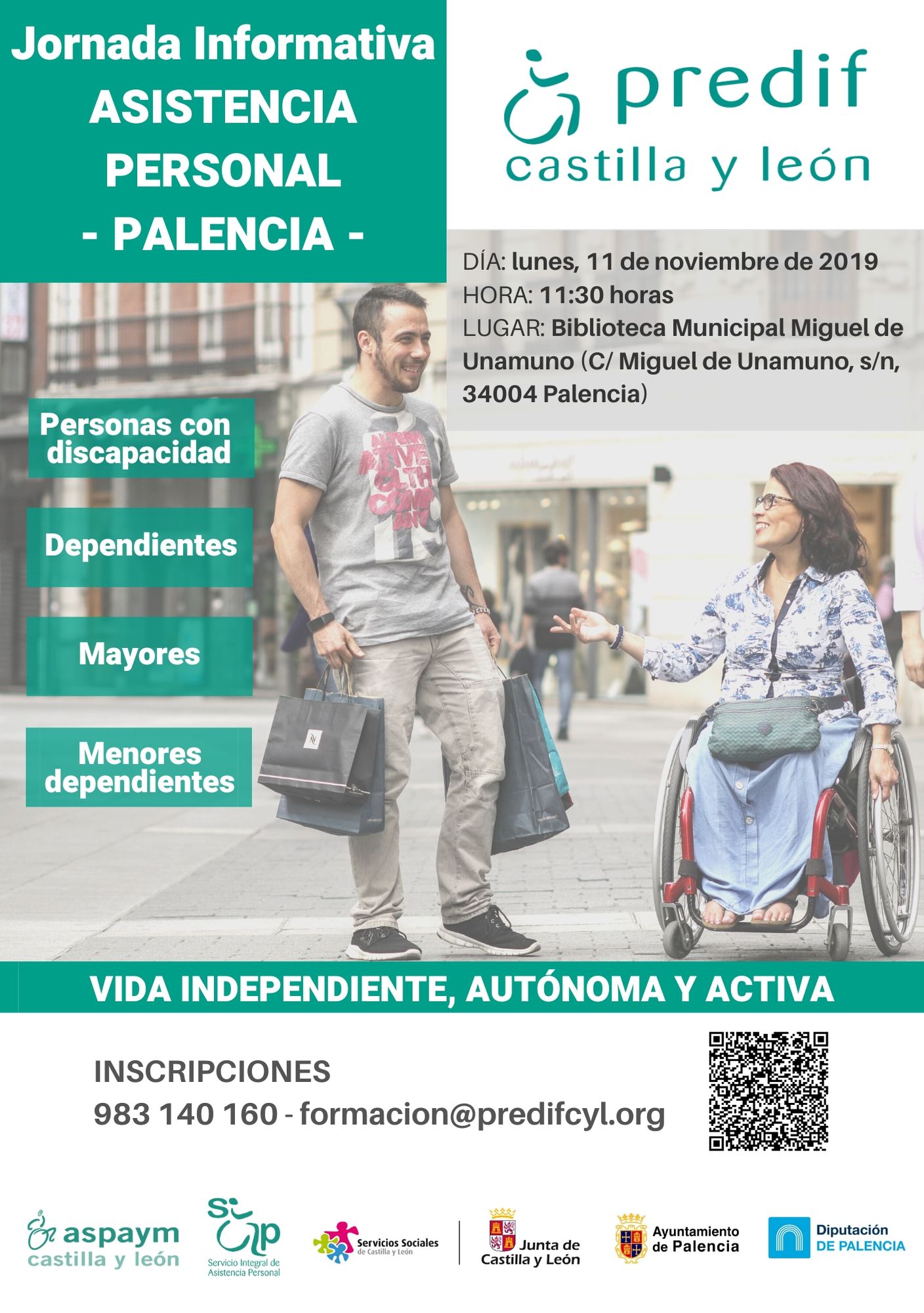 PREDIF Castilla y León ha organizado en Palencia una jornada informativa sobre asistencia personal, que tendrá lugar el lunes, 11 de noviembre, en la Biblioteca Pública (calle Eduardo Dato, 4, 34005 Palencia) a las 11:30 horas.
