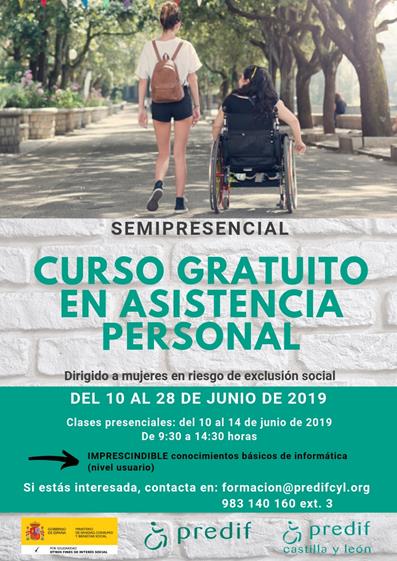 PREDIF PREDIF Castilla y León han organizado una nueva formación en asistencia personal, esta vez dirigida a mujeres en riesgo de exclusión social, que tendrá lugar del 10 al 28 de junio de 2019 de forma semipresencial.